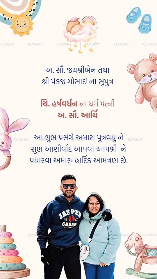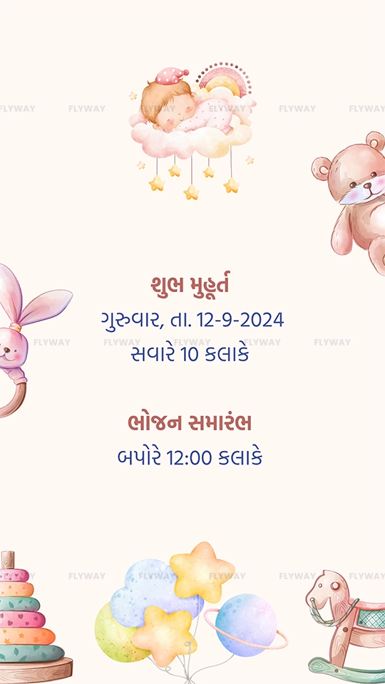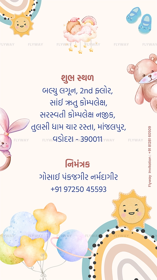 • Theme: Cartoon Baby Doodle Baby Shower Invitation (Gujarati Language)