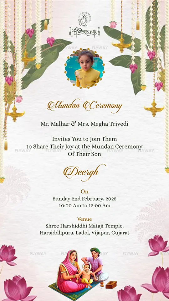 • Theme: Divine Blossoms Mundan Ceremony Invite Card