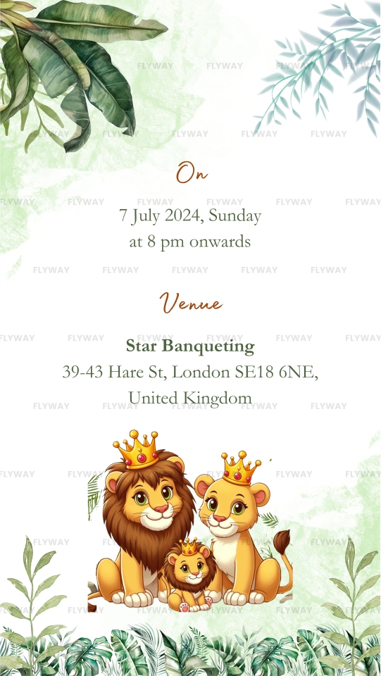 Celebrate the arrival of your little prince with this adorable forest-themed baby shower invitation video featuring a cute cartoon lion king family.