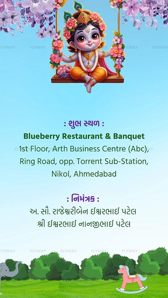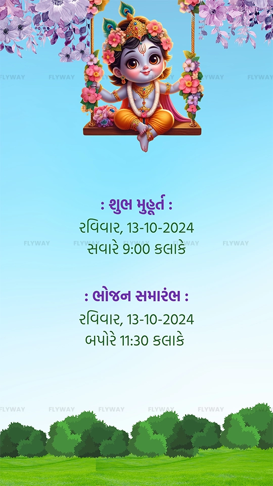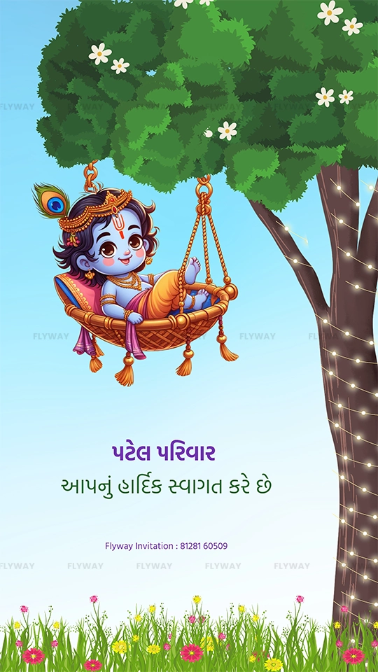 A charming baby shower invite inspired by Little Krishna, blending cultural warmth with joyful celebration.