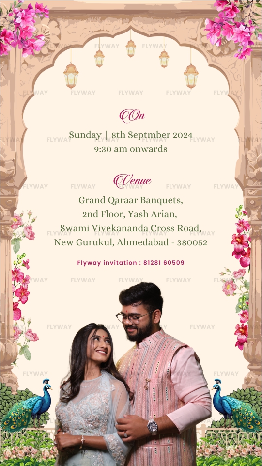 • Theme: Peacock Archway Bliss Engagement E-Invite