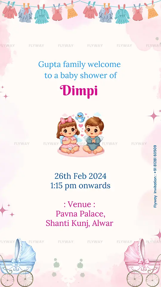 Add a splash of fun and charm with this baby shower invitation video featuring vibrant balloons, twinkling stars, and baby prams. Ideal for welcoming your bundle of joy with joyful flair.